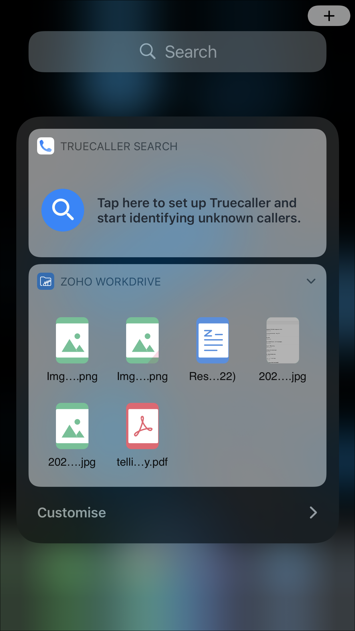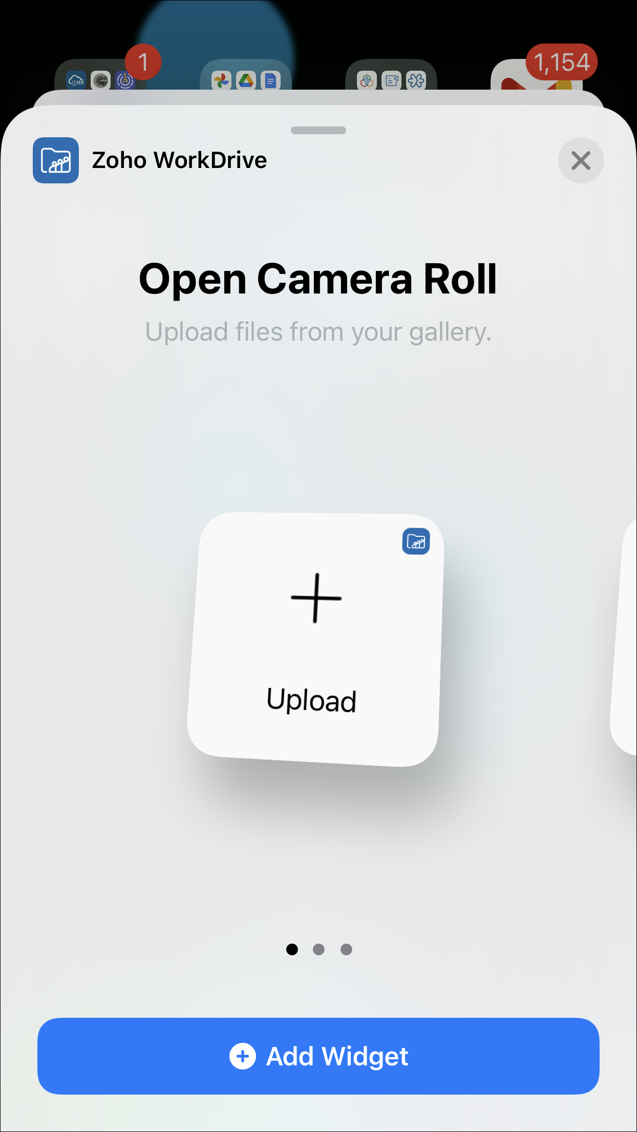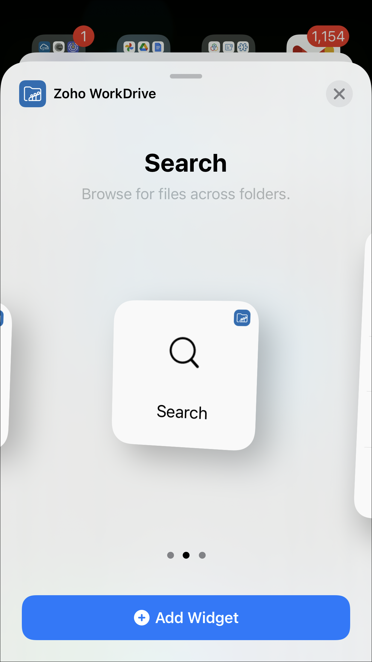 找到 Zoho WorkDrive 小组件,并将其放在主屏幕上。
