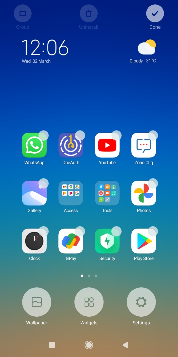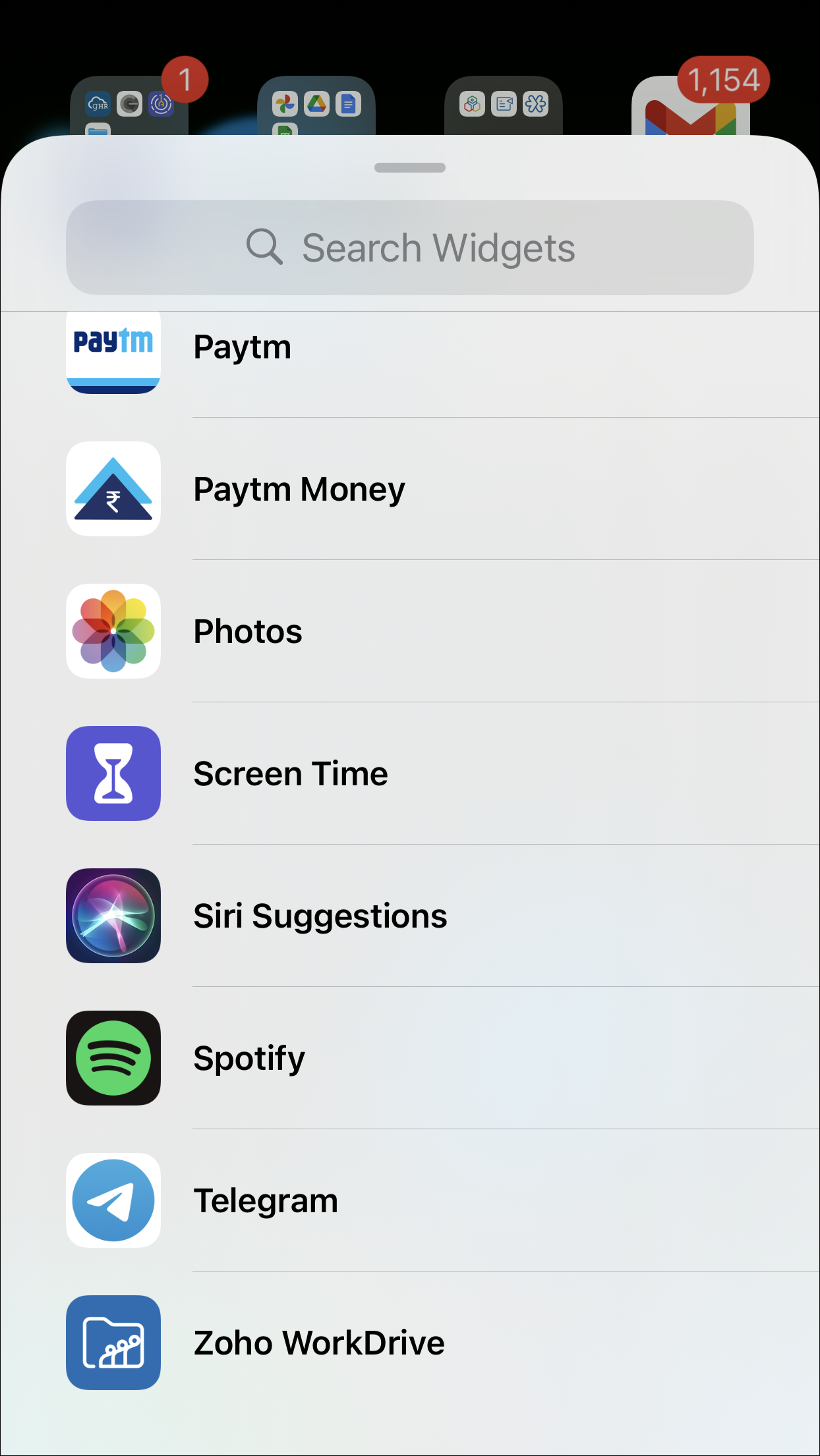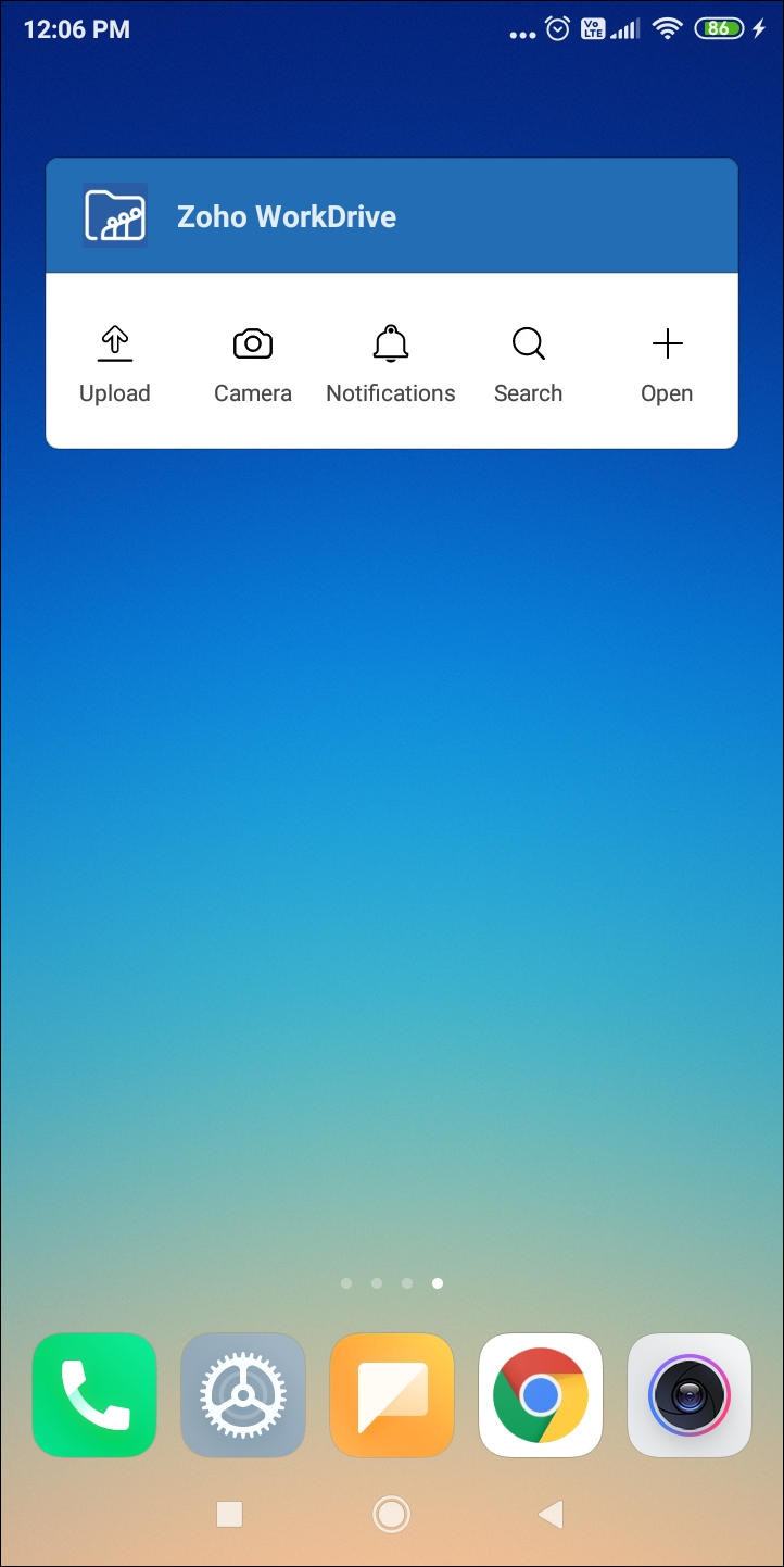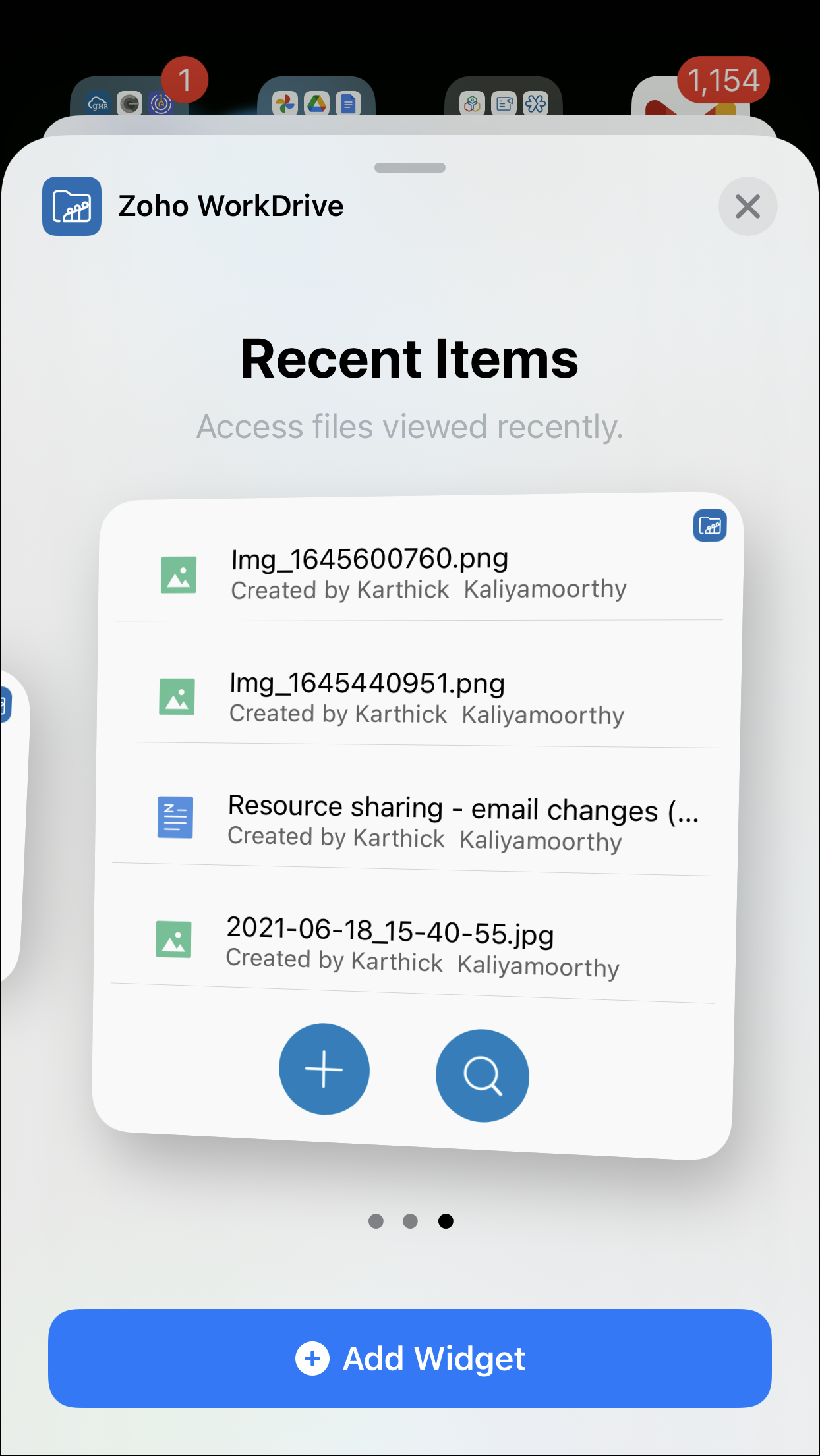 找到 Zoho WorkDrive 小组件,并将其放在主屏幕上。
