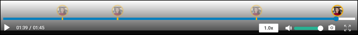 - 已添加注释且带时间戳的评论将通过黄色的小指示符突出显示在视频时间轴上。当您浏览/跳过视频时,可以看到突出显示的时间戳以及相应的用户个人资料。选择突出显示的时间戳会将相应的评论加载到“评论”选项卡中。