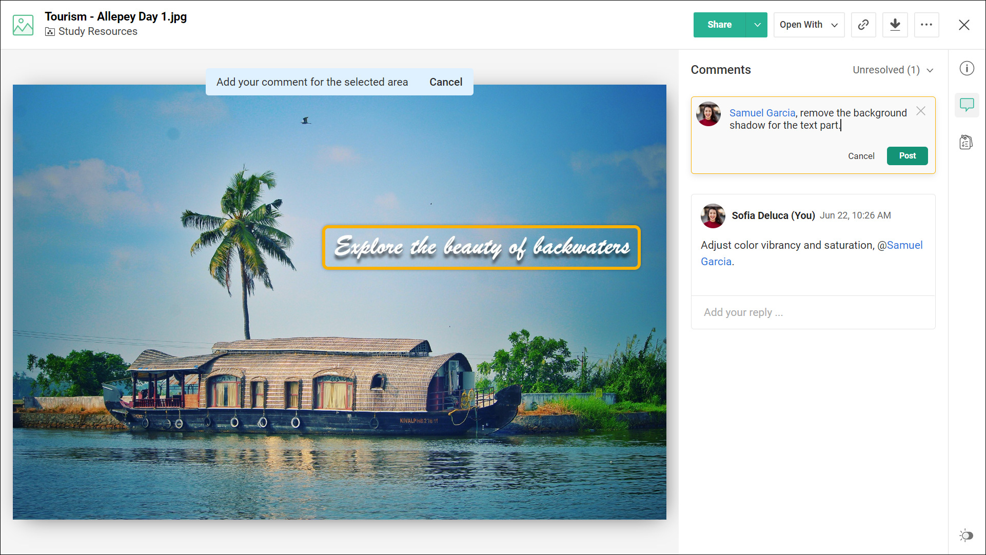 您可以使用注释功能在图像的任何特定部分添加评论。