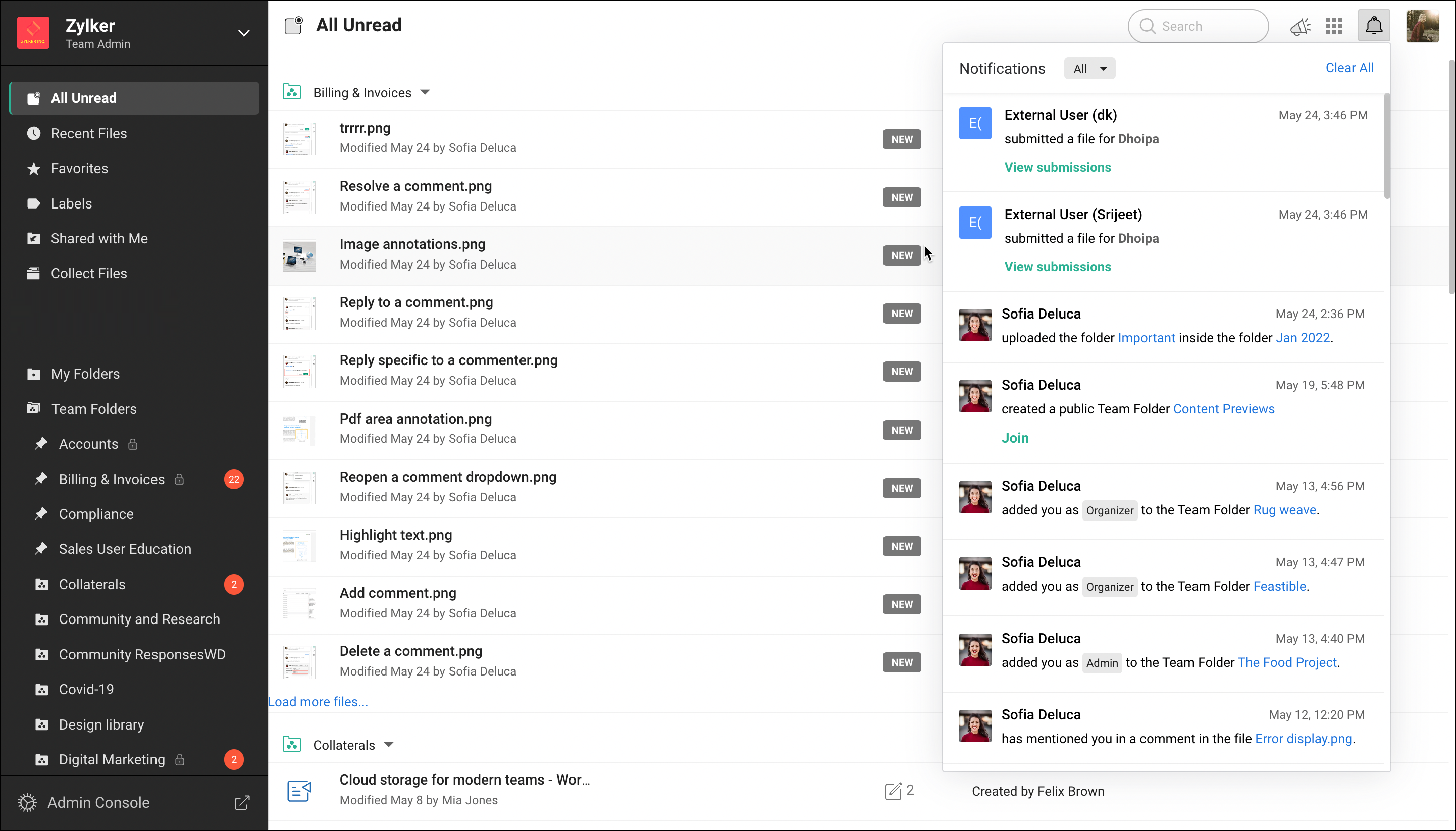 在“所有未读通知”部分可以统一查看所有团队文件夹的通知。