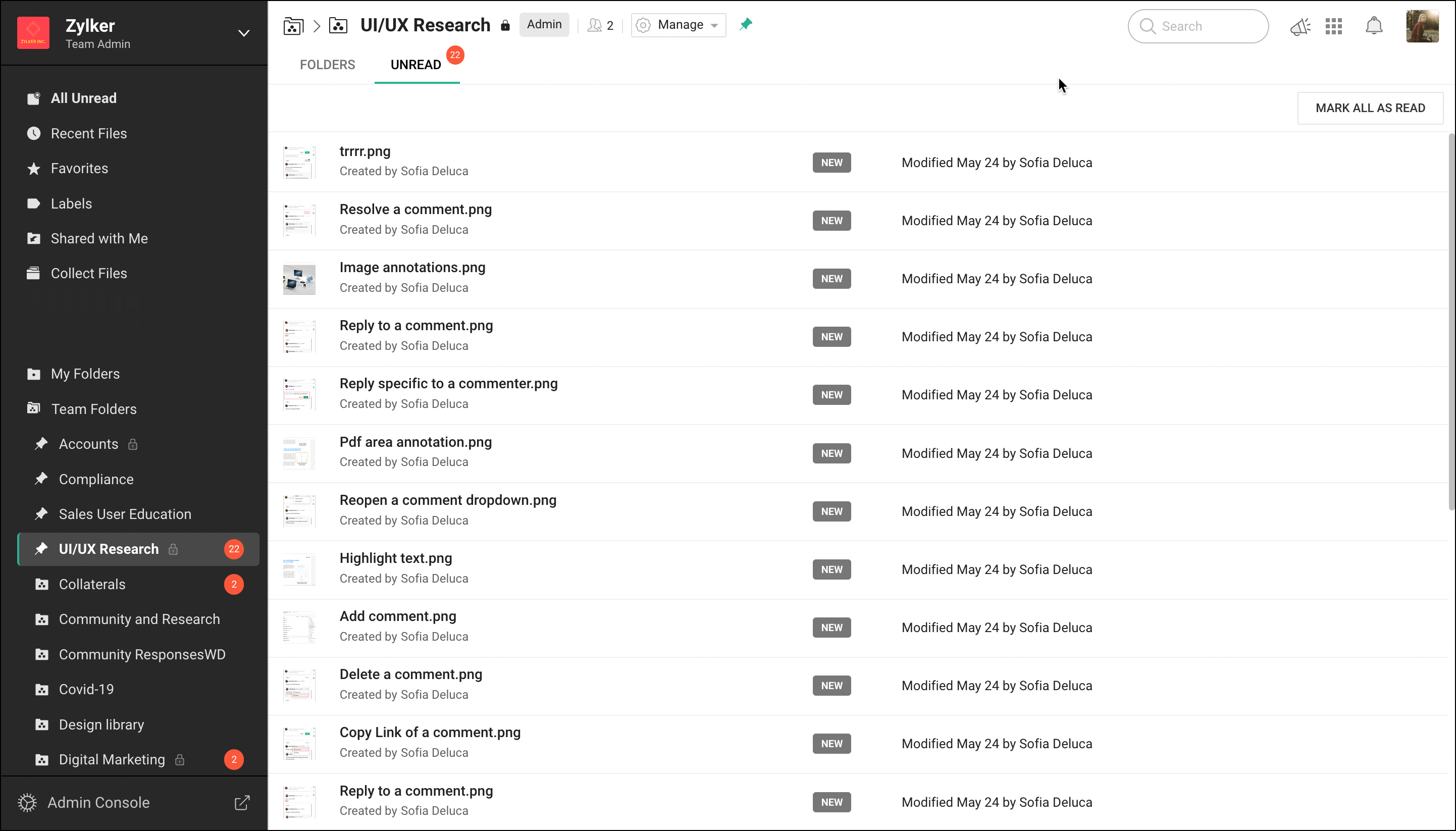 4. 将鼠标悬停在文件上,然后单击右侧的标记为已读。
