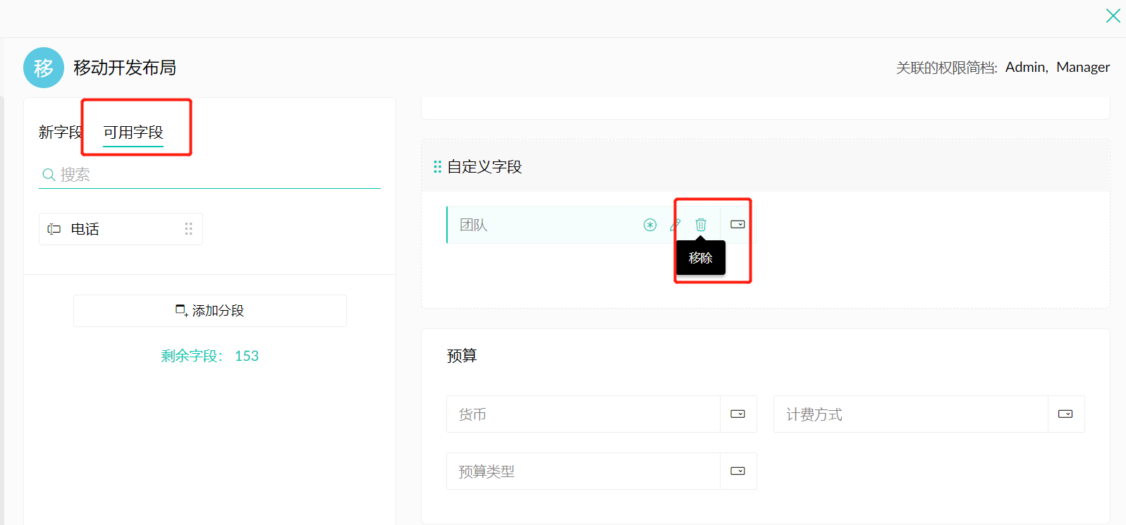 移除字段只可以将创建的字段与现有的字段分离,并不能永久的删除字段,我们可以在可用字段中重新将这个字段添加到布局。